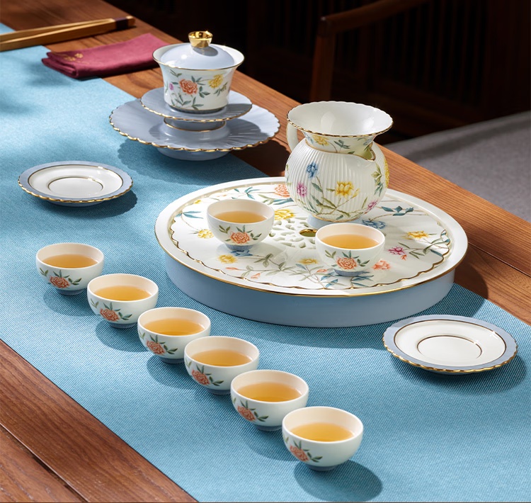 | Packing List | 1 × 270mm double-compartment tea tray 1 × 120ml three-piece gaiwan (lidded bowl set) 8 × 35ml tea cups 1 × 260ml fairness pitcher (cha hai) 1 × 92mm tea strainer 1 × 170mm teapot coaster (or pot stand) 2 × 108mm lid rests |