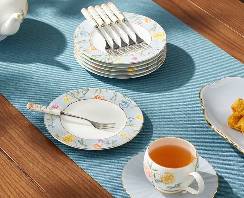 | Packing List | 1 × 700ml double-spout pot 6 × 180ml cups 6 × 145mm saucers 1 × 240ml creamer 1 × 270ml double-compartment sugar bowl 1 × 271mm serving tray 6 × 160mm flat plates 6 × fruit forks |