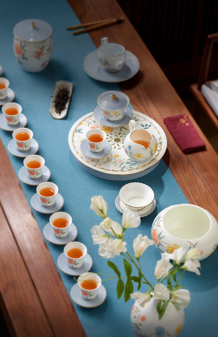 | Packing List | 1 × 270mm double-compartment tea tray 1 × 210ml double-spout teapot 1 × 120ml three-piece lidded bowl (gaiwan) 10 × 50ml tea cups 10 × 86mm tea saucers 1 × 260ml fairness pitcher (cha hai) 1 × 92mm tea strainer 1 × 108mm lid rest 1 × 170mm teapot coaster (or pot stand) 1 × 150mm tea scoop 1 × 1.3L waste water bowl (jian shui) 1 × 161mm vase 1 × 750ml double-compartment tea caddy 1 × silicone gasket (or rubber seal ring) |