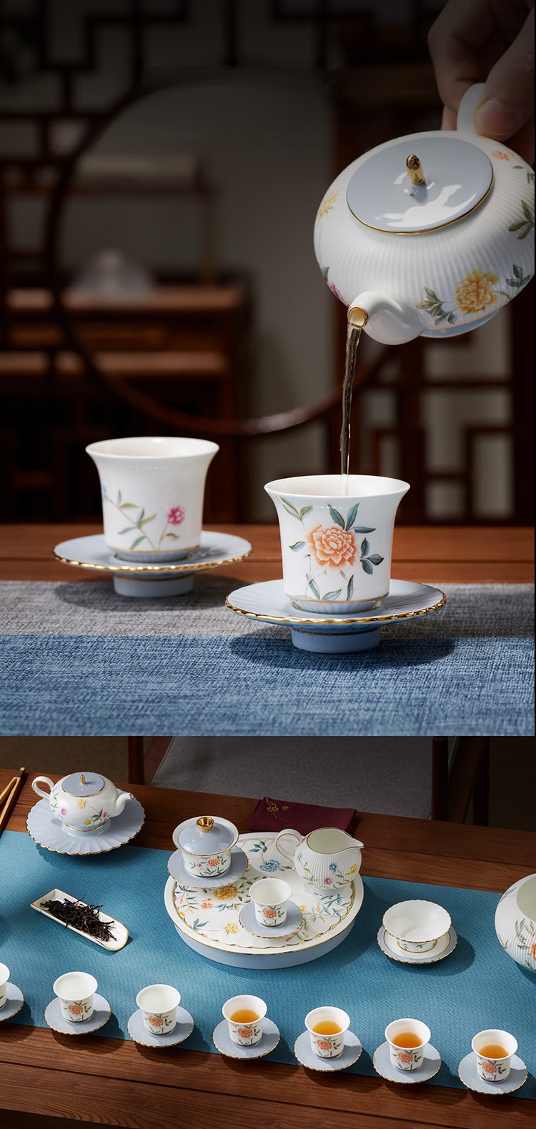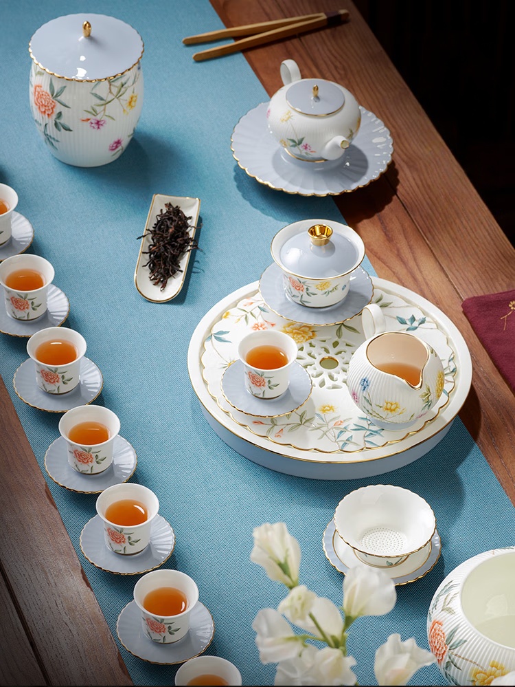 | Packing List | 1 × 270mm double-compartment tea tray 1 × 210ml double-spout teapot 1 × 120ml three-piece lidded bowl (gaiwan) 10 × 50ml tea cups 10 × 86mm tea saucers 1 × 260ml fairness pitcher (cha hai) 1 × 92mm tea strainer 1 × 108mm lid rest 1 × 170mm teapot coaster (or pot stand) 1 × 150mm tea scoop 1 × 1.3L waste water bowl (jian shui) 1 × 161mm vase 1 × 750ml double-compartment tea caddy 1 × silicone gasket (or rubber seal ring) |