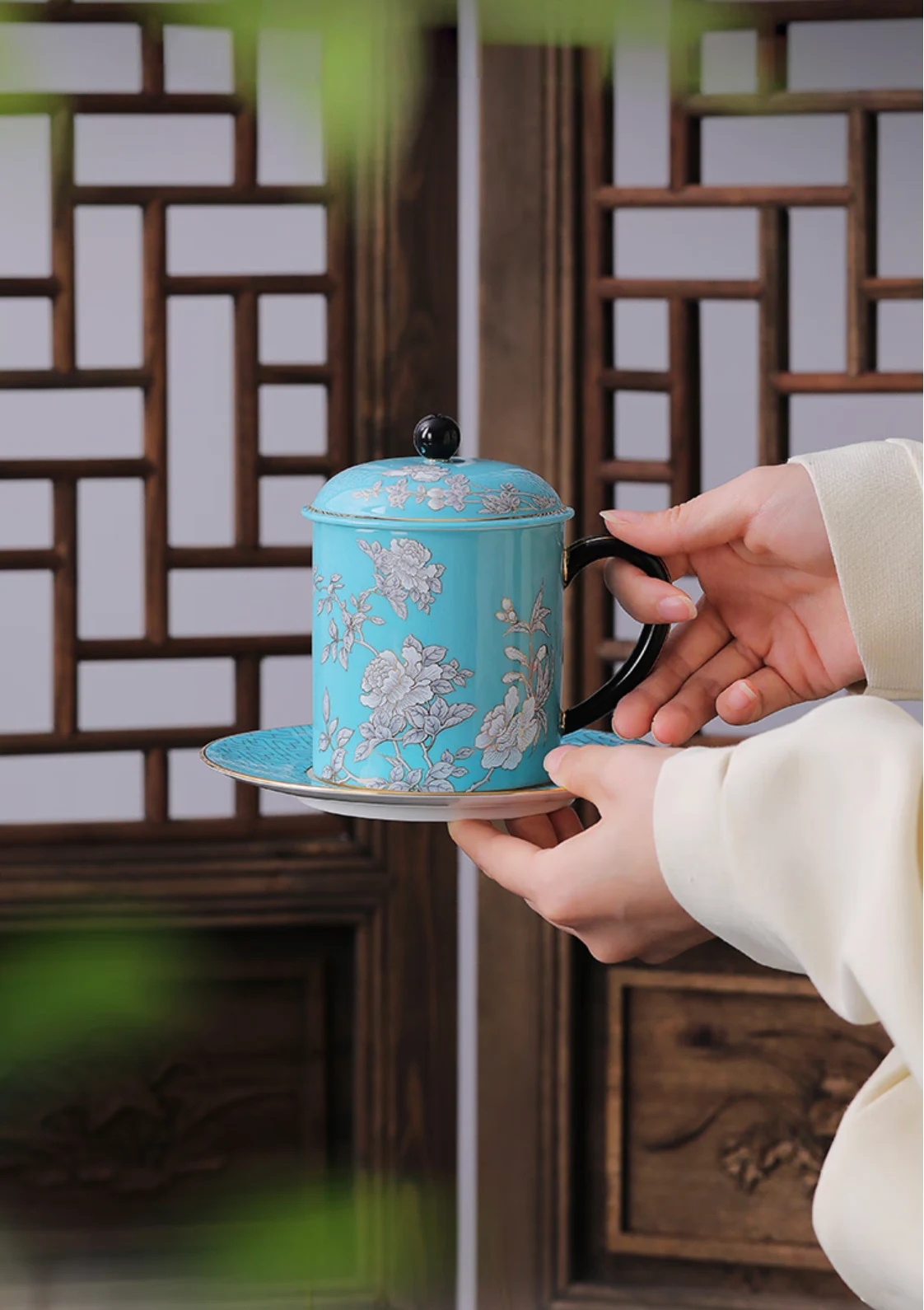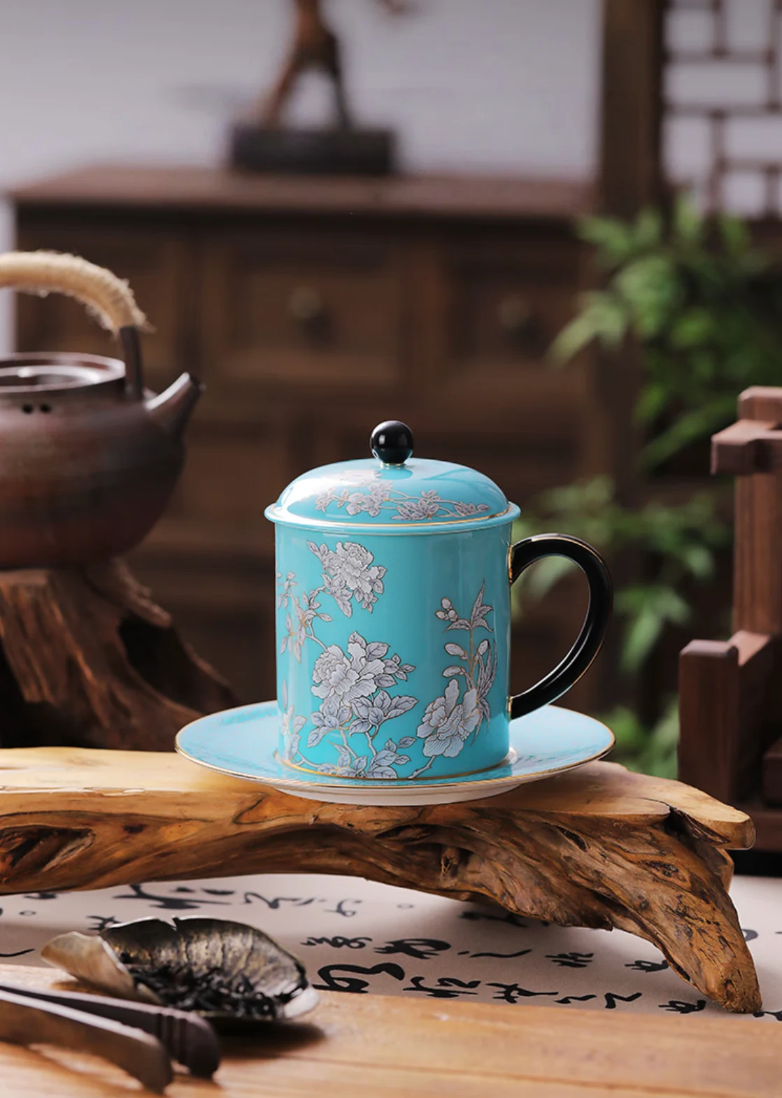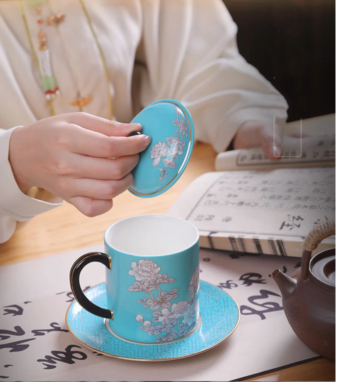 Elegant peony 3-piece meeting cup set (350ml)