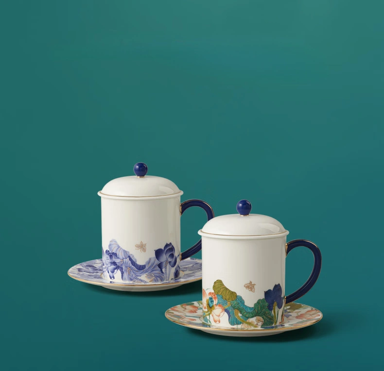 Felicitous Duet 3-piece Lid Cup and Pair Cup (Blue and White with Colorful)