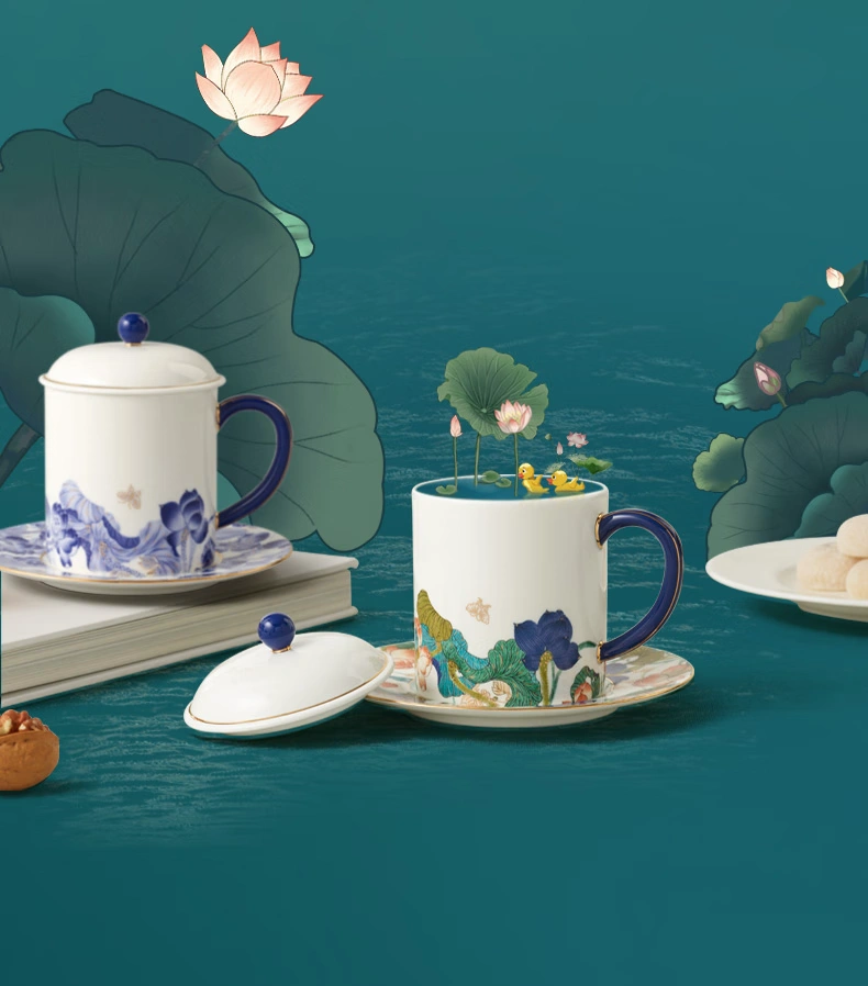 Felicitous Duet 3-piece Lid Cup and Pair Cup (Blue and White with Colorful)